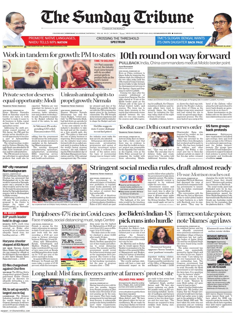 The Tribune 21 Feb 2021 Pdf Narendra Modi Facebook